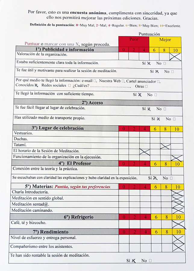 Como se puede apreciar, exprimimos las 2 horas al máximo con una estructura bien pensada, bien planificada y bien temporizada para tocar todos los aspectos de una sesión introductoria a la meditación para mejorar la calidad de vida de las personas.